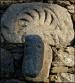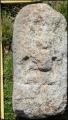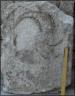Inscrição Sin texto  Descrição Cabecera de estela que se conserva completa con seis radios que giran a la izquierda. Presenta una cabecera cuadrada