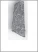Fragmento superior de una estela con cabecera semicircular que ha perdido el texto. Decorada con un cuarto creciente boca arriba |