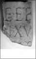 Inscrição [- - -]NVM P[-c. 2-]++V[- - - / - - - - - - / - - - - - - / - - - - - - / - - - - - - / - - - - - - /- - - - - - / - - - - - - / - - -]++BRO++[- - - (...)  Descrição Fragmento superior derecho de una tabla de arenisca local. La pieza ha sido reutilizada en, al menos, dos ocasiones, lo cual ha dado lugar a tres (...)