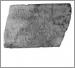 Placa de guijarro fragmentada en los laterales con restos de cal en el reverso |