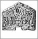 Fragmento de estela oikomorfa que conserva la puerta semicircular |