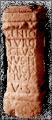 Ara con la superficie tan gastada que no se pueden reconocer los trazos que pudo contener. La base se conserva completa y se une al fuste por una (...) |