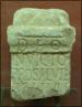 Inscription Odoge/[n]i Calae/[t]i f(ilii) an(norum) / [X]XXV  Description Bloque de caliza, de color blanco pajizo, de forma casi cuadrada o trapezoidal, debido a que esta fragmentado por tres de sus lados.
