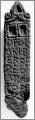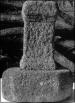 Estela de granito rota por arriba y por abajo, adornada con un creciente lunar |