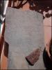 Inscrição COCEFPTL / ++++++ / - - - - - -  Descrição Losa de pizarra, rota por abajo, a su vez partida en dos.