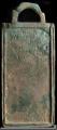 Inscripci贸n Saturni/ni  Descripci贸n Pesa de telar en barro cocido, con forma de tronco piramidal. Texto escrito antes de la cocci贸n