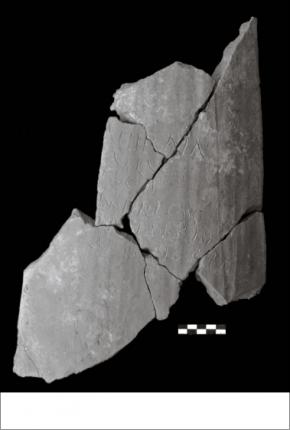 Grafito ante coctionem en un imbrex incompleto, roto en siete fragmentos