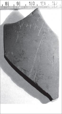 Descripción Grafito sobre un fragmento de pared de terra sigillata