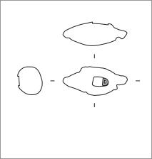 Glans de plomo de superficie irregular, con huellas de cortes modernos (?), marrón clara. Peso: 23,8 gr.