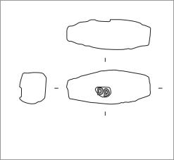 Glans de plomo con las puntas planas y corte transversal cuadrangular irregular. Superficie tallada formando ángulos (¿cortada o martillada?), marrón clara y dura. Peso: 64,1 gr.