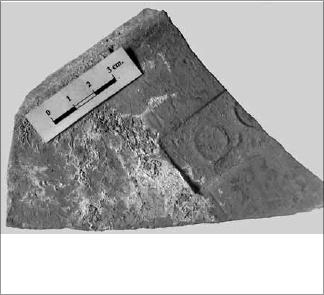 Sello sobre un fragmento de teja roto por todos sus laterales