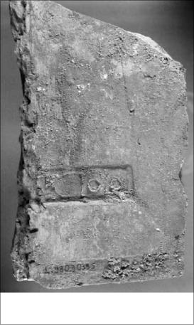 Sello sobre un fragmento de ladrillo roto por tres de sus laterales