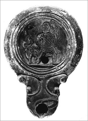 Lucerna procedente del mercado negro de antigüedades. Tiene una doble planta pedis con la marca del alfar