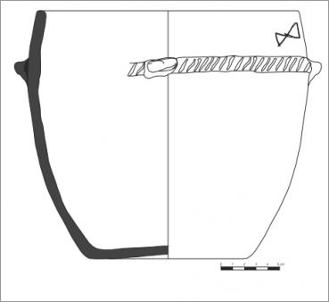 Grafito situado en el borde superior de una vasija de cocina a mano