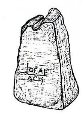 Grafito en la cara anterior de un pondus de forma troncopiramidal fragmentado en su parte superior.