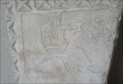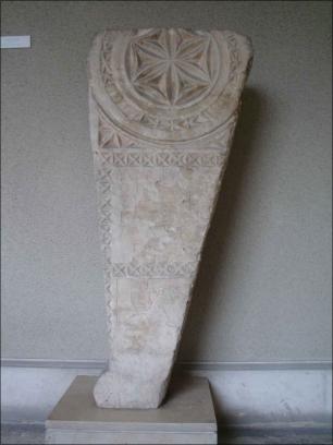 Fracturada diagonalmente, lo cual afecta a buena parte de la zona derecha del texto.