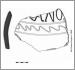 Grafito sobre un fragmento de olla de cerámica anaranjada, con una franja decorada.